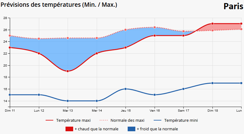 Prévision des températures et écart par rapport aux normales à Paris - Meteo-Villes