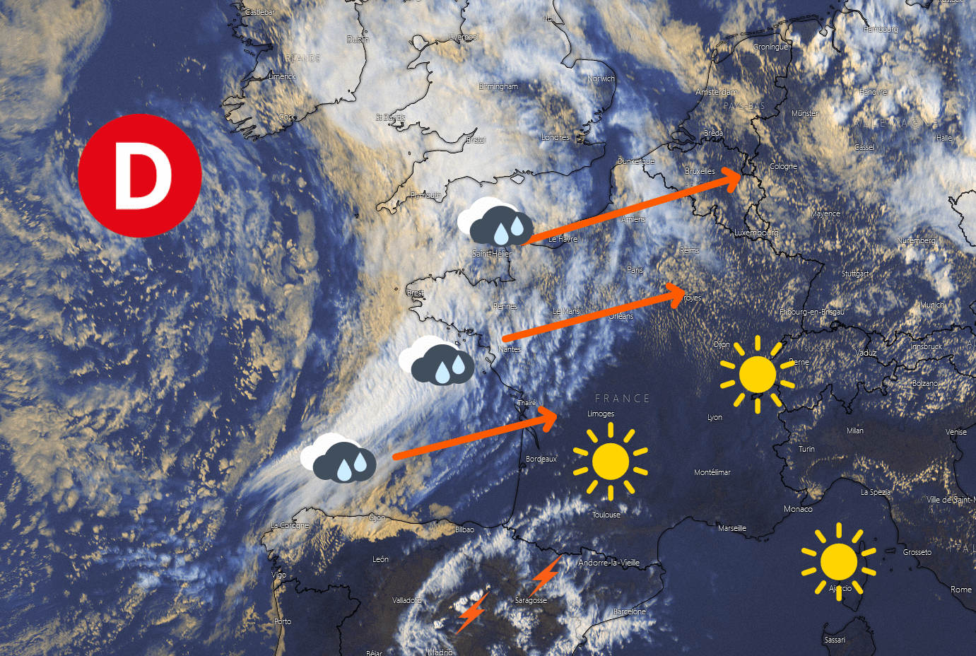 Image satellite du 11 juillet à 17h - Windy, annotation MeteoVilles