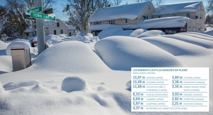 En plaine, le Japon et le continent nord-américain sont les régions du monde les plus touchées par les chutes de neige. Elles sont exposées à des tempêtes impressionnantes.