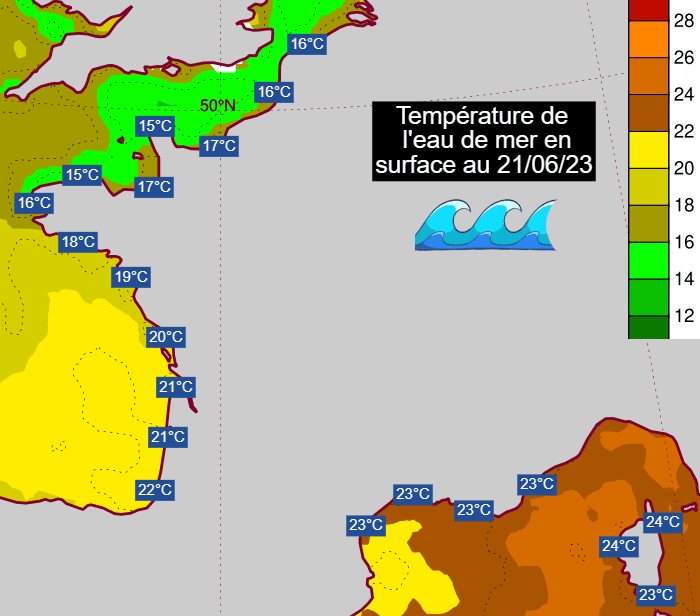 Avec un soleil resplendissant et une chaleur parfois forte, nul doute que les plages seront prises d'assaut ce week-end. De plus, la température de l'eau de mer est actuellement anormalement élevée pour un début d'été. Comptez sur des valeurs de 15 à 17°C pour une baignade en Manche ou en Mer du Nord, entre 18 et 22°C du nord au sud de la façade atlantique et autour de 23 à 24°C sur les plages méditerranéennes.