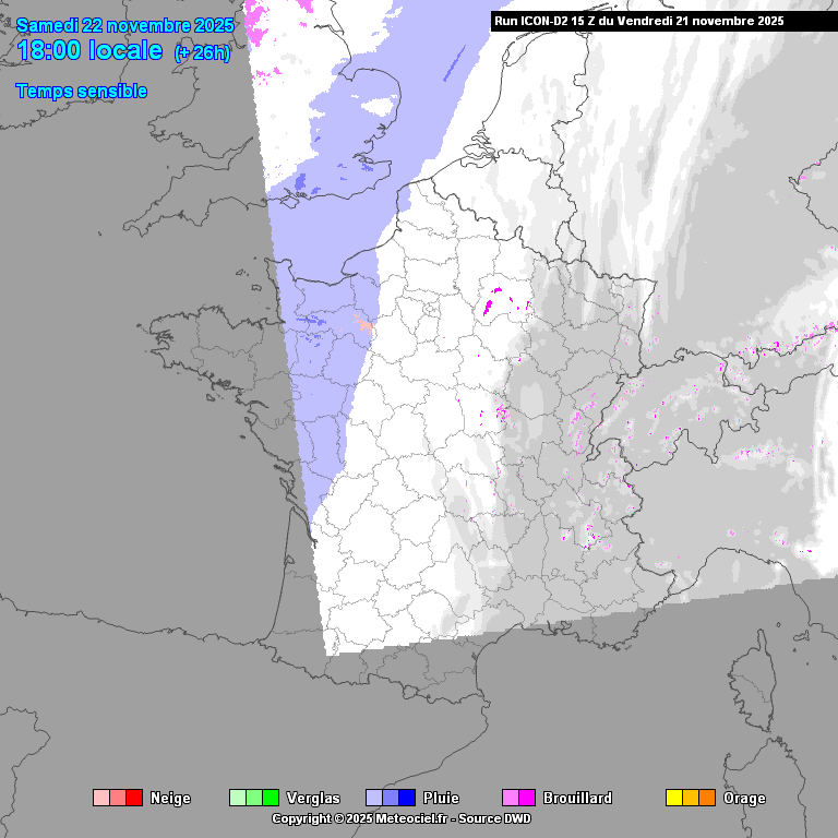 Après minuit et jusqu’en fin de nuit, les chutes de neige s’étendront à l’orléanais, à la Champagne, à une partie de la Bourgogne et au Massif central où des inversions de température pourraient entraîner des pluies verglaçantes. De plus, il n’est pas exclu qu’un épisode de pluies verglaçantes touche également une partie des régions du nord-est, ainsi que la Bourgogne et éventuellement le Centre.