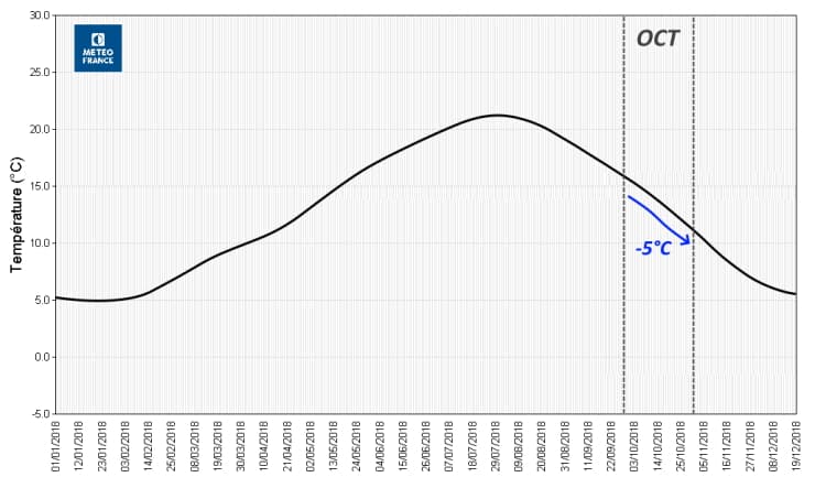 Au cours du mois d'octobre, la baisse des températures s'accélère en même temps que la réduction de la durée du jour dans l'hémisphère nord.