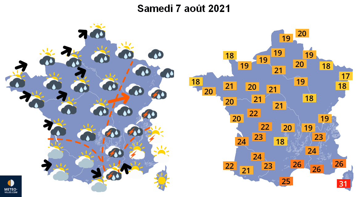 Temps sensible prévu pour le samedi 7 août 2021 – Météo-Villes