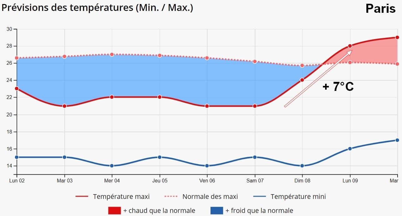 Évolution des températures à Paris du 2 au 10 août 2021 – Météo-Paris
