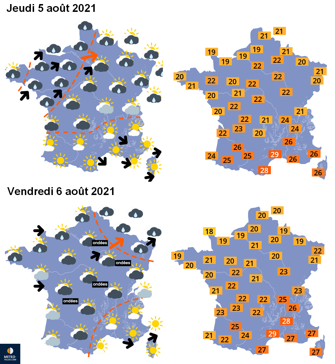 Temps sensible prévu pour les jeudi 5 et vendredi 6 août 2021 – Météo-Villes