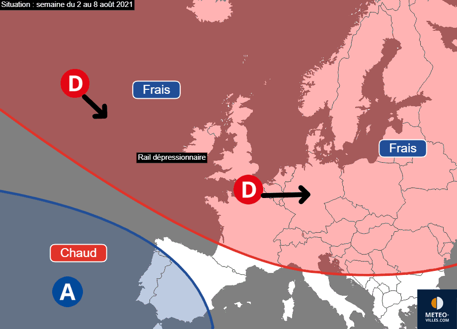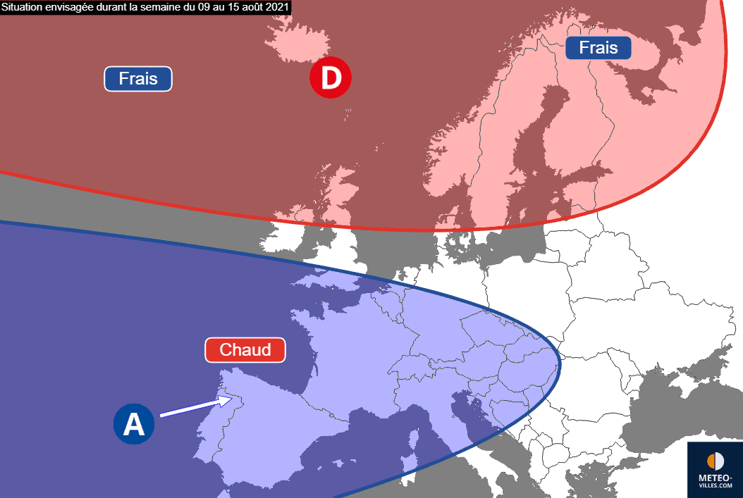 Situation atmosphérique envisagée sur l'Ouest de l'Europe durant la semaine du 09 au 15 août 2021 – Météo-Villes
