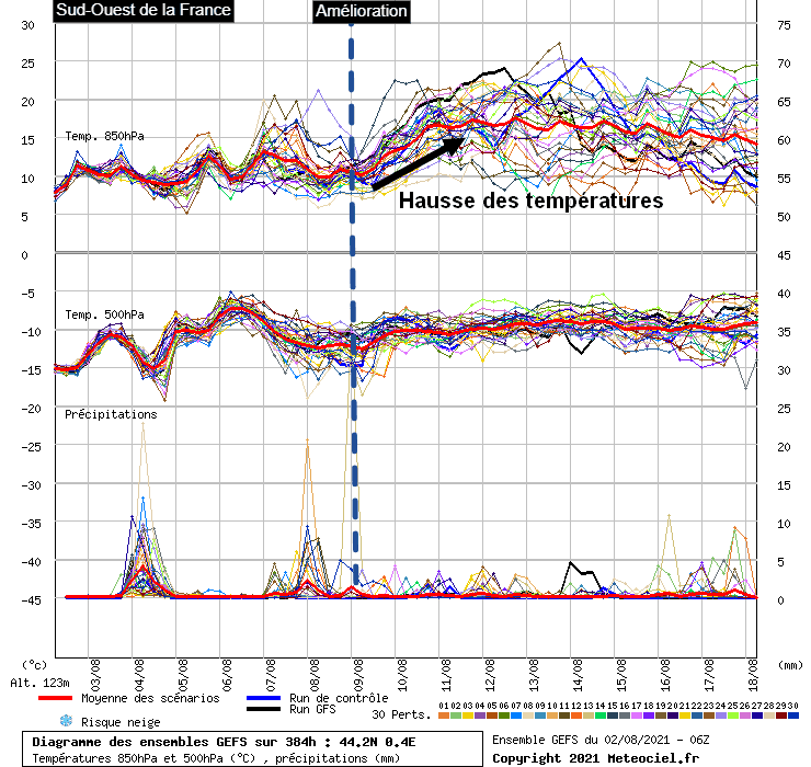 Seulement, la question se pose sur la durabilité de cette période plus clémente car des signaux d'un nouveau changement de temps sont déjà visibles sur les diagrammes en toute fin d'échéance, autour du 15 août. Une tendance qui restera à préciser d'ici là.