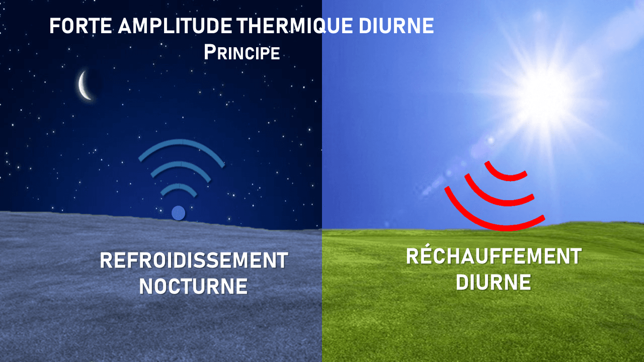 Schéma représentant le principe d'une forte amplitude thermique - Météo Concept