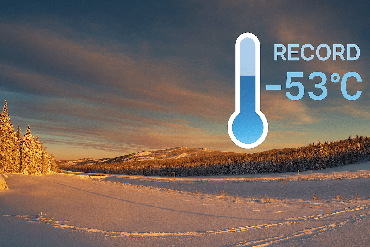 Le Canada a franchi un seuil glacial ce mercredi avec ses premières températures sous les -50 °C, enregistrées au Yukon (Nord-ouest du pays). Mercredi matin, le thermomètre est descendu jusqu’à -53 °C à Braeburn, au Yukon. Il s’agit de la température la plus basse observée au pays depuis le début de l’hiver, en valeur réelle et non en ressenti. Un tel niveau de froid aussi tôt dans la saison n’avait plus été atteint depuis trois décennies. La dernière occurrence comparable remonte au 5 décembre 1995, lorsque la localité de Ross River avait elle aussi enregistré -53 °C.