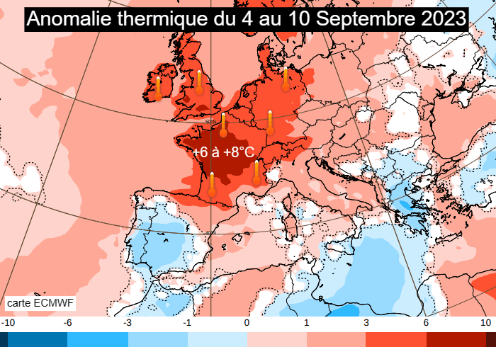 Anomalie thermique en semaine du 4 au 10 septembre 2023 - via ECMWF