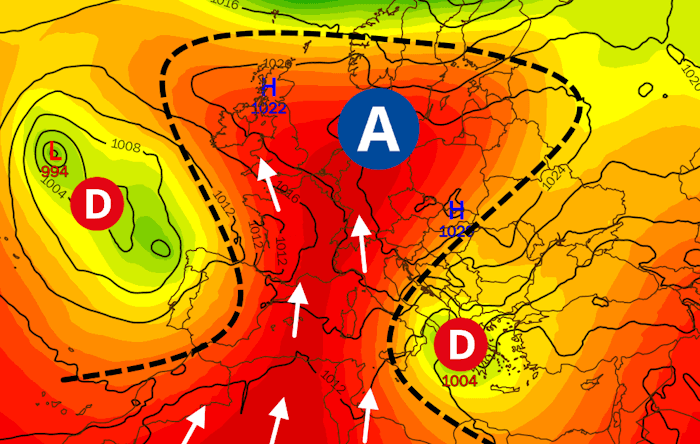 Les blocages de type "oméga" n'ont rien inédit. Cependant, celui qui s'est formé en ce début septembre sur l'Europe de l'Ouest est un véritable cas d'école et s'avère très puissant. Ce lundi 4 septembre 2023, deux zones dépressionnaires de petite échelle sont présentes au large du Portugal et vers la Grèce. Entre les deux, une puissante dorsale anticyclonique s'érige du Maghreb vers la Mer du Nord en faisant remonter de l'air très chaud. Comme ces centres d'action font du sur-place (raison pour laquelle on parle de blocage), la masse d'air chaud peut s'accumuler et se maintenir durablement sur la France, conduisant à une vague de chaleur impressionnante.