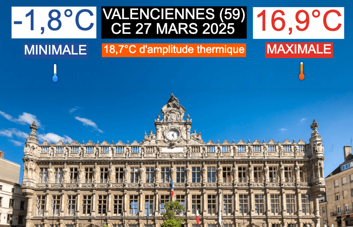 18,7°C d'amplitude thermique à Valenciennes (59) ce jeudi 27 mars 2025 - Météo Villes