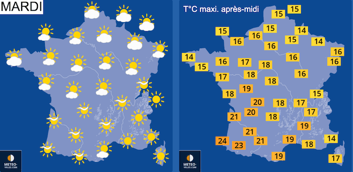 Prévisions METEO-VILLES pour la journée de mardi