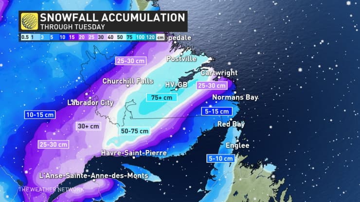 Ce mardi 24 novembre 2020, la tempête de neige terminait sa course sur le sud-est du Canada en apportant des vents violents et des cumuls de neige particulièrement impressionnants sur l'est du Québec et sur le Labrador. Des cumuls de 50 à 80 centimètres sont observés ! La région d'Happy Valley - Goose Bay figure parmi les plus touchées. Située au bord de l'océan Atlantique, cette région est habituée à subir d'impressionnantes tempêtes de neige car les dépressions en provenance de l'ouest s'y renforcent à l'approche de l'océan.