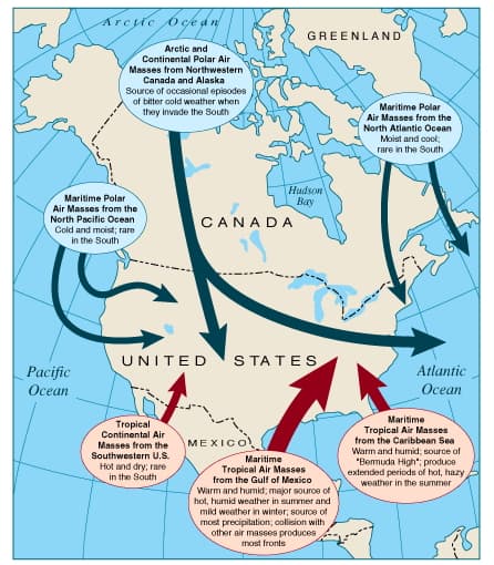 Schéma du déplacement des masses d'air en Amérique du Nord - via J. W. Clav