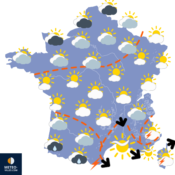 Évolution du temps prévu entre jeudi et vendredi par Météo Villes >>>