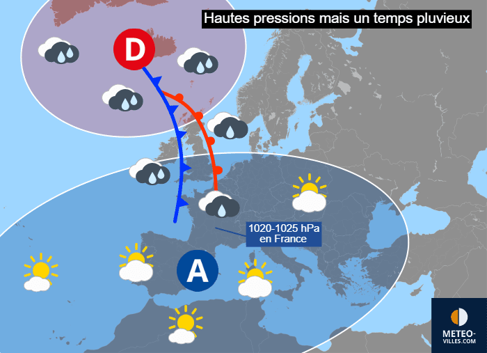 Situation aux pressions anticycloniques mais au temps humide en France - Météo Villes
