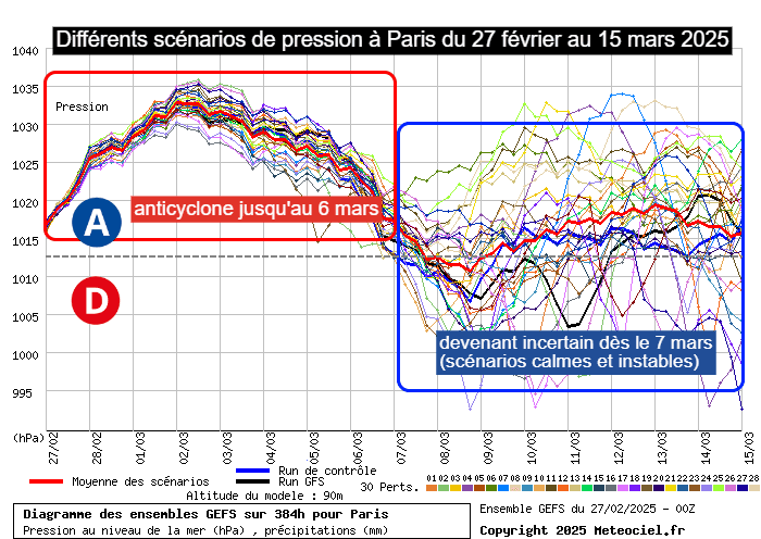 Différents scénarios de pression à Paris du 27 février au 15 mars 2025 - meteociel.fr