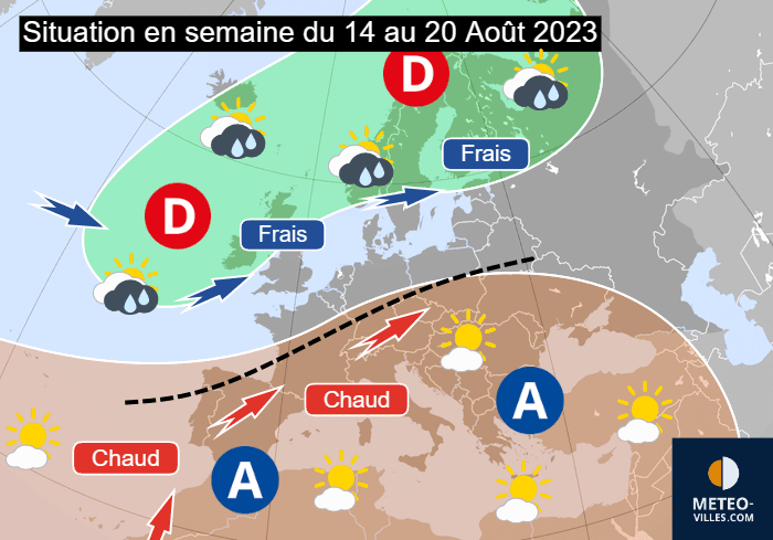 Situation dominante prévue en Europe durant la semaine du 14 au 20 août 2023 - Météo Villes