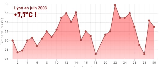 Températures maximales à Lyon au mois de juin 2003 - via infoclimat.fr