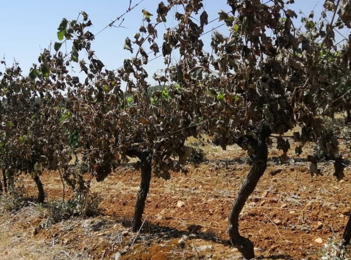 Vignes littéralement "grillées" par la chaleur sur l'arrière-pays méditerranéen - Chai d'Emilien