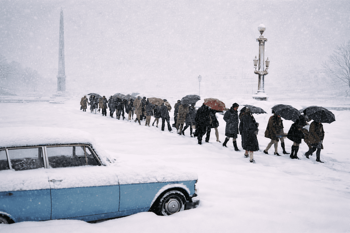 La place de la Concorde (Paris) paralysée lors de la tempête de neige du 4 mars 1970, à la sortie des bureaux - Chronique Météo Villes