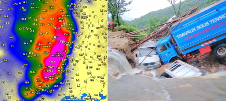 Un peu moins de 2 semaines après le début de l'été météorologique, un véritable épisode cévenol survient le vendredi 12 juin 2020 ! Alors que ces derniers sont plus que rares à cette saison, il présente une intensité inédite pour un mois de juin avec des cumuls en 24 heures de 434 mm à Vialas (48), 341 mm à Villefort (48) et 309 mm au Mont-Aigoual (30) ! Les principaux cours d'eau cévenols débordent en causant des dégâts mais sans faire de victime.