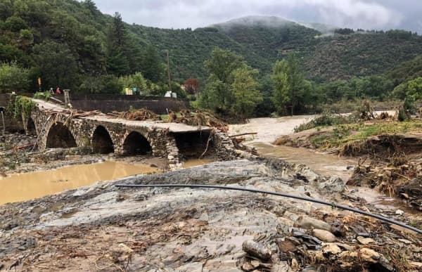 Pont détruit à Saint-André-de-Majencoules (Gard) le 19 septembre 2020 - photo pompiers du Gard