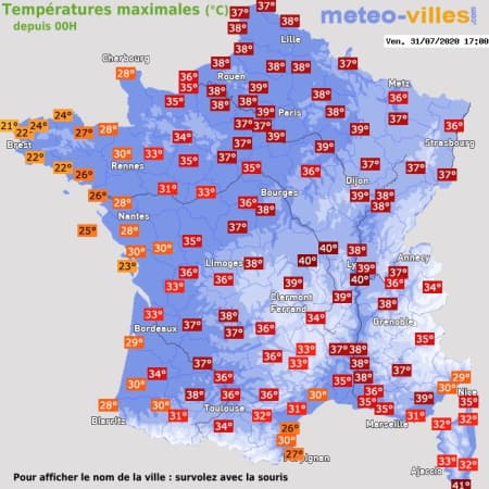 Températures maximales en France le vendredi 31 juillet 2020 - Météo Villes