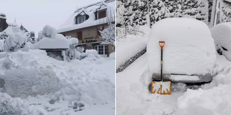 Avec les températures froides et cette importante agitation, tous les massifs français reçoivent d'importantes quantités de neige, à tel point que le risque d'avalanches devient important jusque dans les Vosges et le Jura. C'est toutefois le Massif Central qui reçoit les quantités de neige les plus spectaculaires. Il tombe plus d'un mètre de neige par endroits, notamment dans le Cantal où certains villages sont coupés du monde en raison des routes ensevelies sous des congères de 2 mètres de haut !
