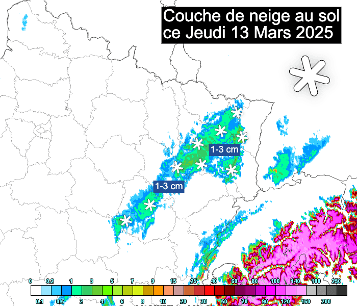 Couche de neige envisagée au sol ce matin du jeudi 13 mars 2025 - meteociel.fr