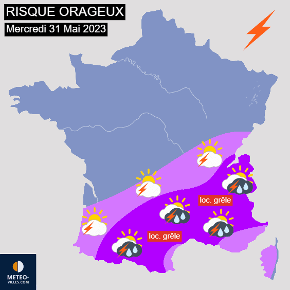Risque orageux pour le mercredi 31 mai 2023 - Météo Villes