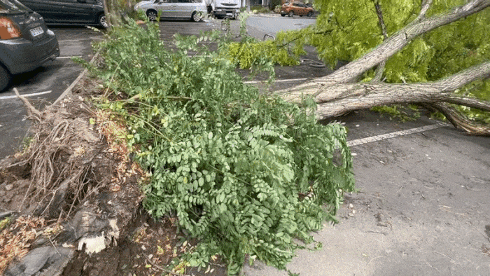 Arbre déraciné à Angers (49) ce mercredi 2 août 2023 - via @TiTim485 sur Twitter