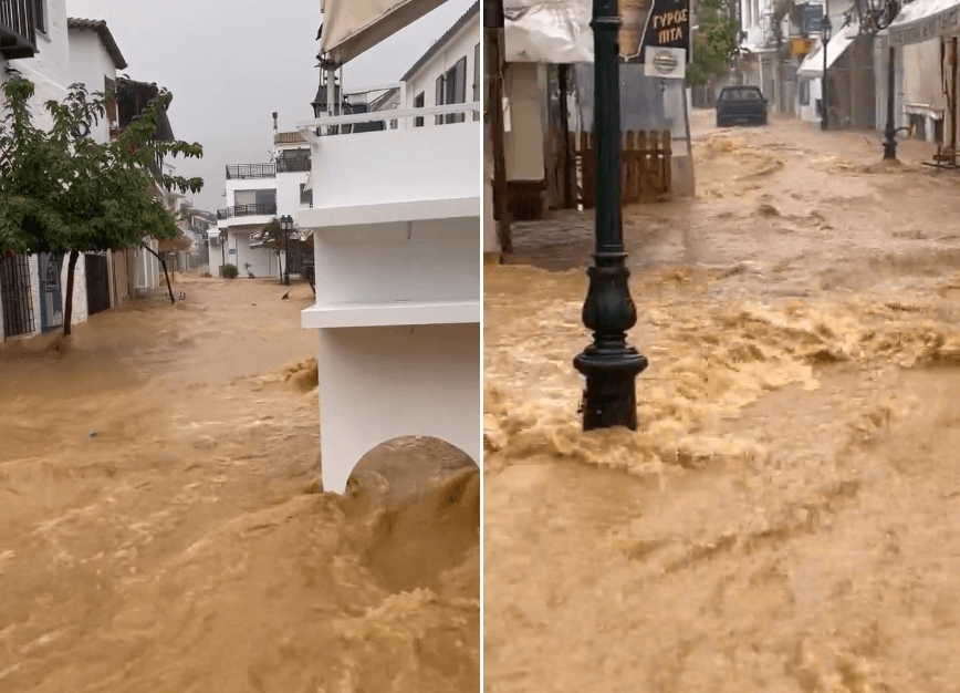 Torrents dans les rues de Skiathos (Grèce) le mardi 5 septembre 2023 - via Pashalis Manolis