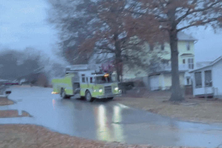 Camion de pompier glissant sur le verglas à Imperial (Missouri) le 22 janvier 2024 - via Katelynn Voisey