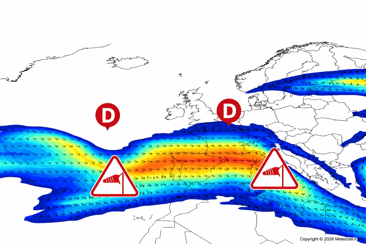 Cette configuration météo est propice à des dégradations rapides. Le positionnement précis du courant jet jouera un rôle clé, car il déterminera les zones les plus exposées aux phénomènes dangereux. Selon les dernières projections, ce courant jet devrait circuler au niveau du golfe de Gascogne, ce qui fait craindre des vents violents sur l’ensemble de la façade atlantique, avec un risque non négligeable de tempêtes à développement rapide.