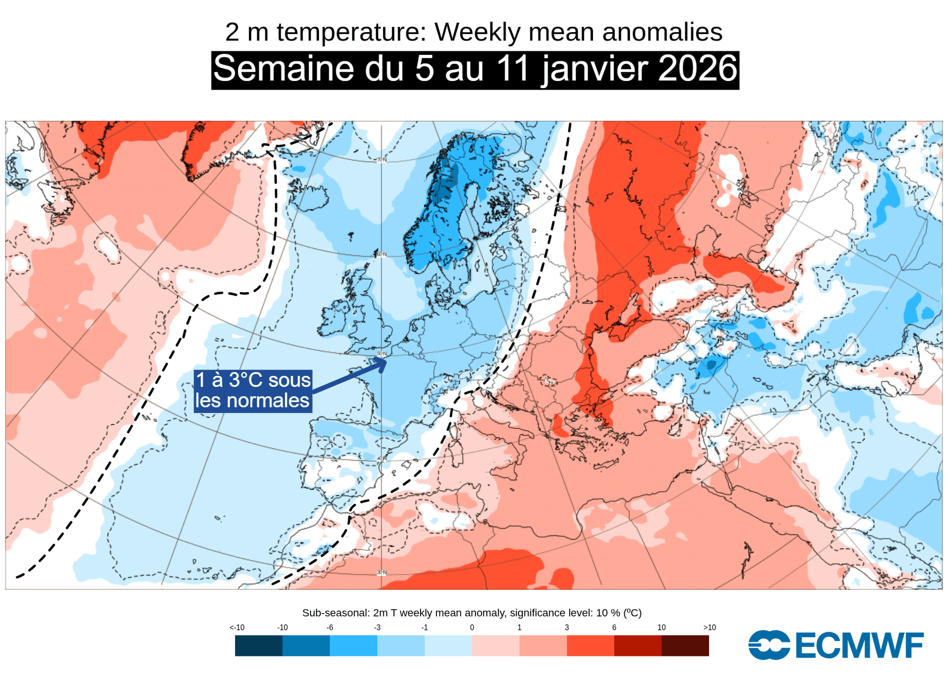 Ainsi, les températures devraient rester globalement hivernales durant la semaine du 5 au 11 janvier avec des valeurs demeurant sous les normales de la période sur la totalité du pays selon les dernières modélisations.