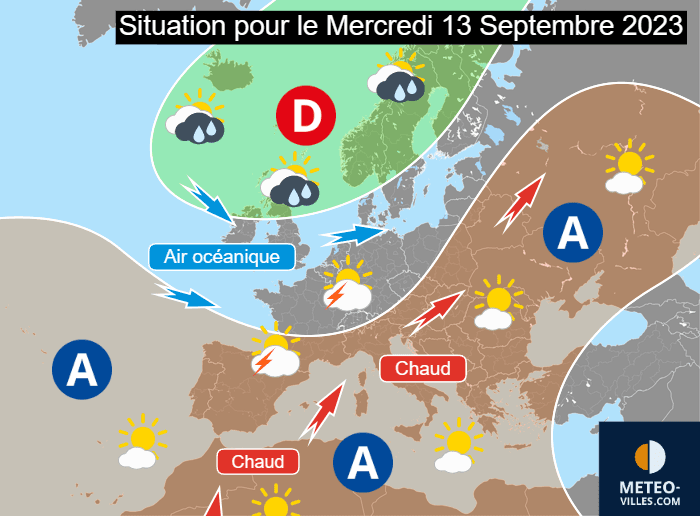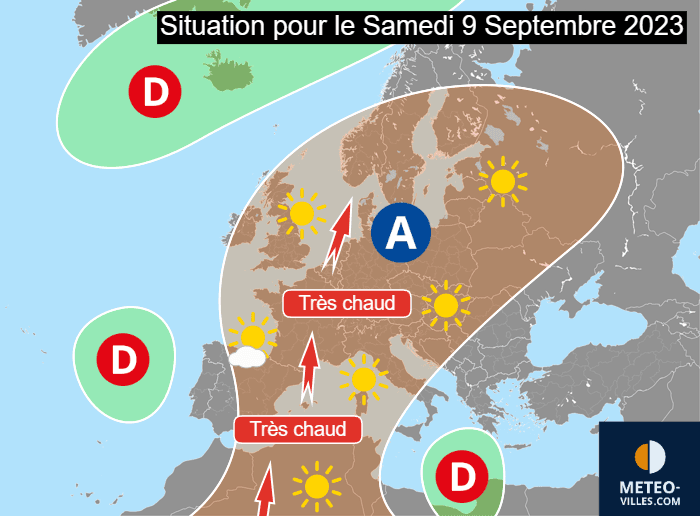 Situation à échelle continentale prévue le samedi 9 septembre 2023 - Météo Villes