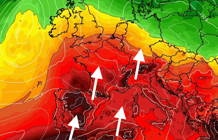 Alors que nous sommes actuellement en flux de nord-ouest piloté par des basses pressions plongeant des Îles Britanniques à l'Italie, un changement radical de régime se profile dès le début de la semaine prochaine. En effet, l'anticyclone des Açores devrait étendre une dorsale au dessus de la France dès le lundi 7 août avant de se renforcer sur le centre de l'Europe d'ici au milieu de la semaine. Ainsi, la France devrait se trouver sous un flux de sud prenant ses racines au Maghreb ! Nous passerons donc d'une influence nord-atlantique et à une influence africaine !