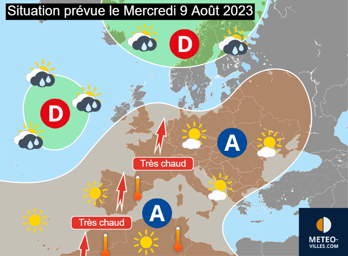 Situation prévue en Europe pour le mercredi 9 août 2023 - Météo Villes