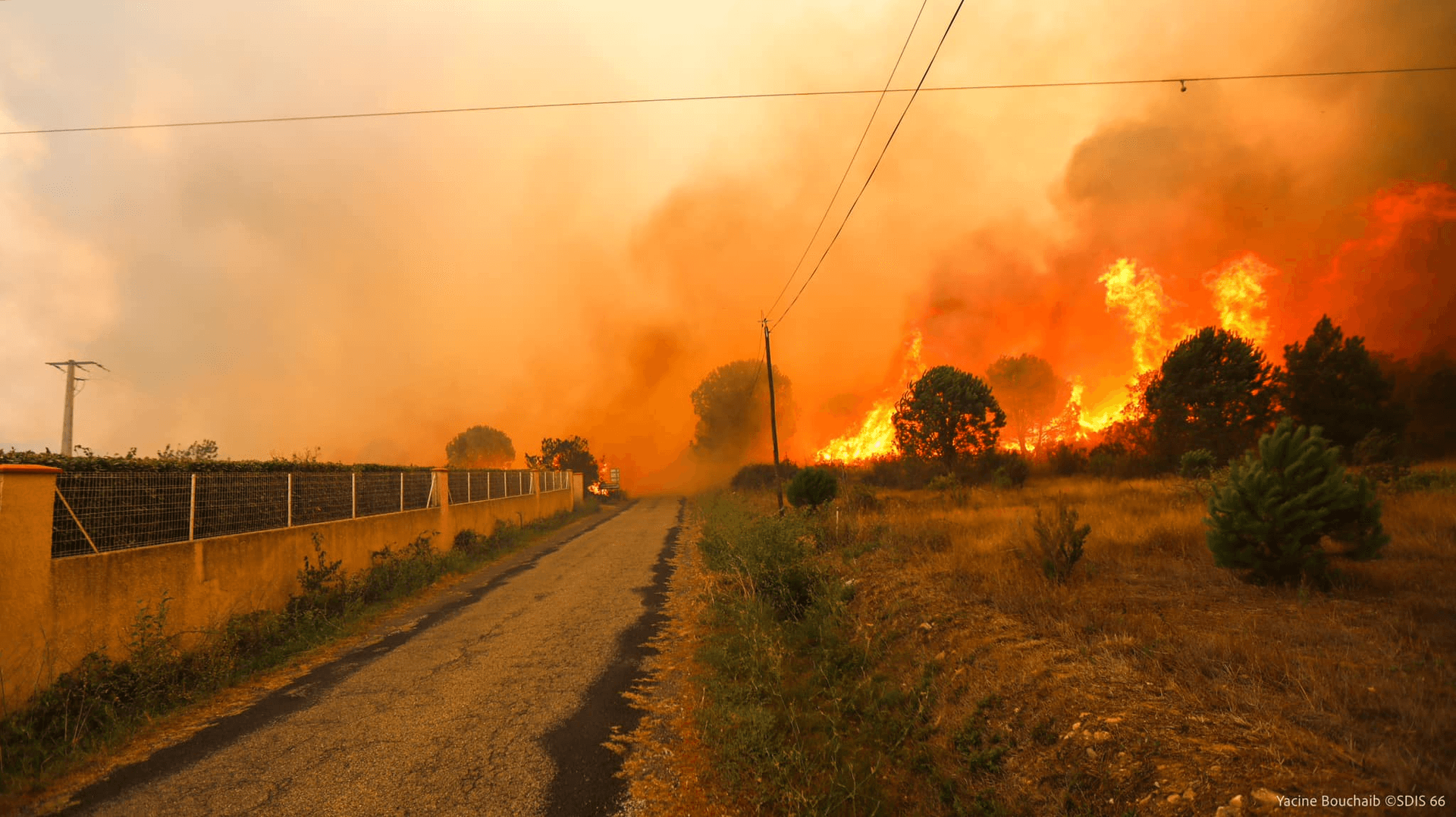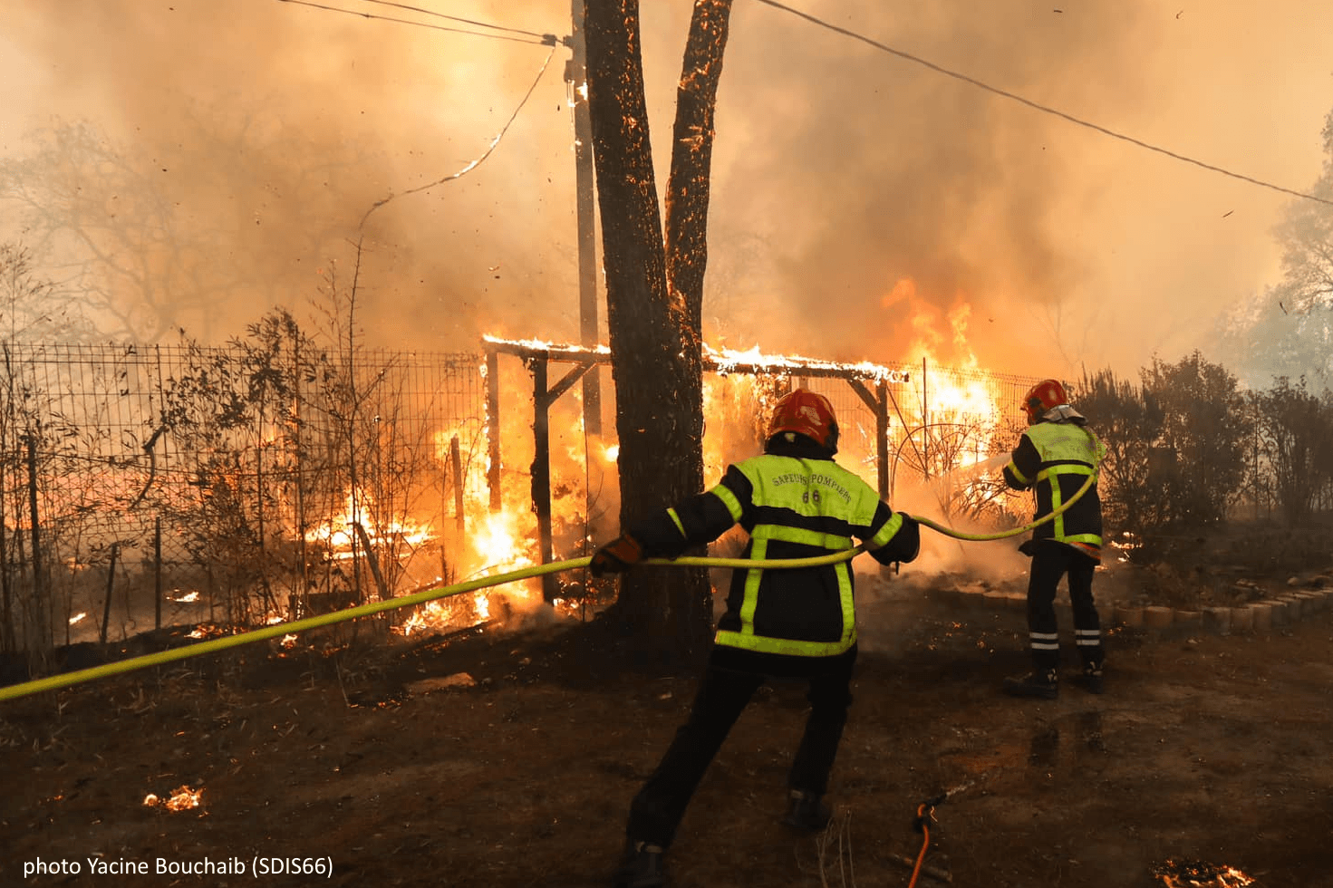 Violent incendie à Saint-André (66) le lundi 14 août 2023 – photo Yacine Bouchaib / SDIS 66