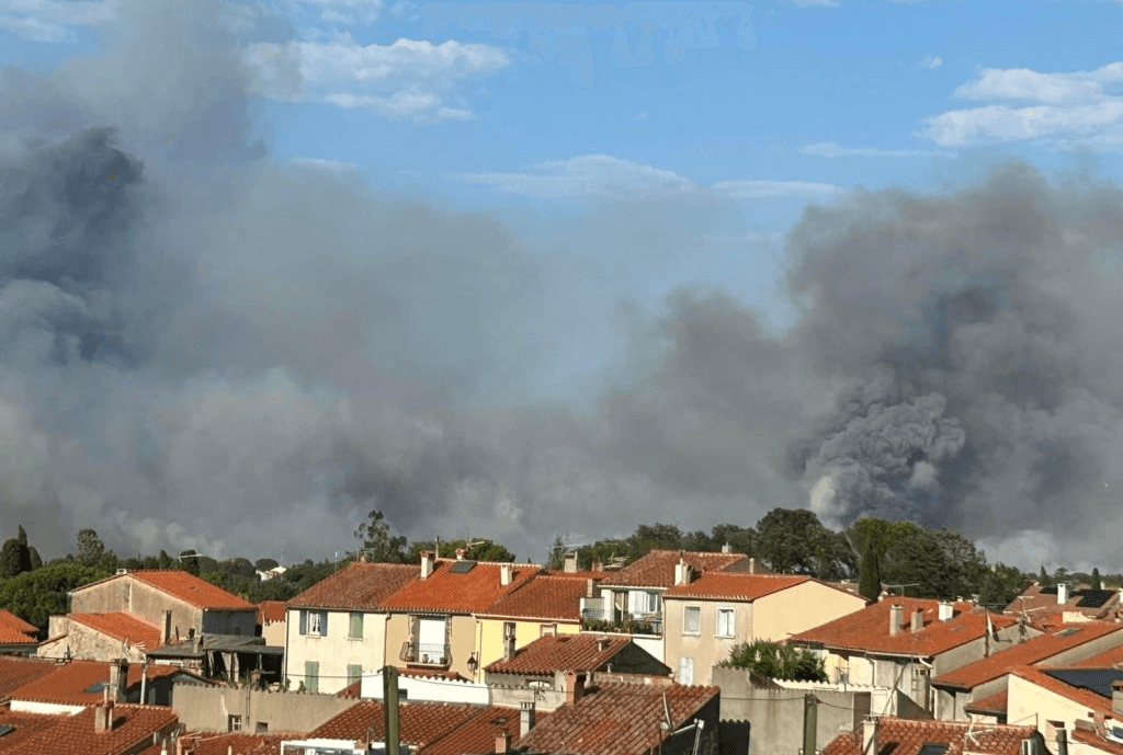 Violent incendie à Saint-André (66) en fin d'après-midi du lundi 14 août 2023 - photo via Feux de Forêt