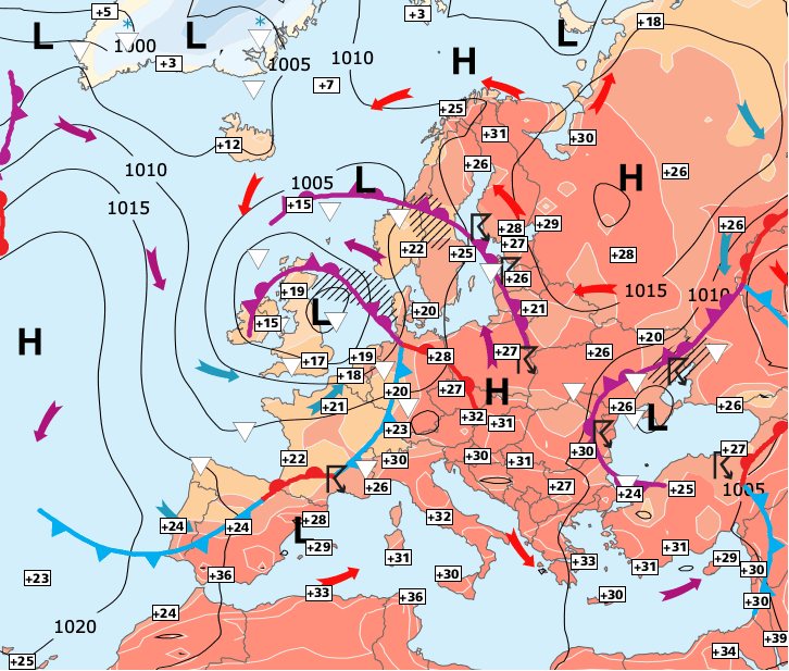+ L'anticyclone des Açores ne bloquerait la circulation océanique humide et fraiche que bien après le 15 juillet !!