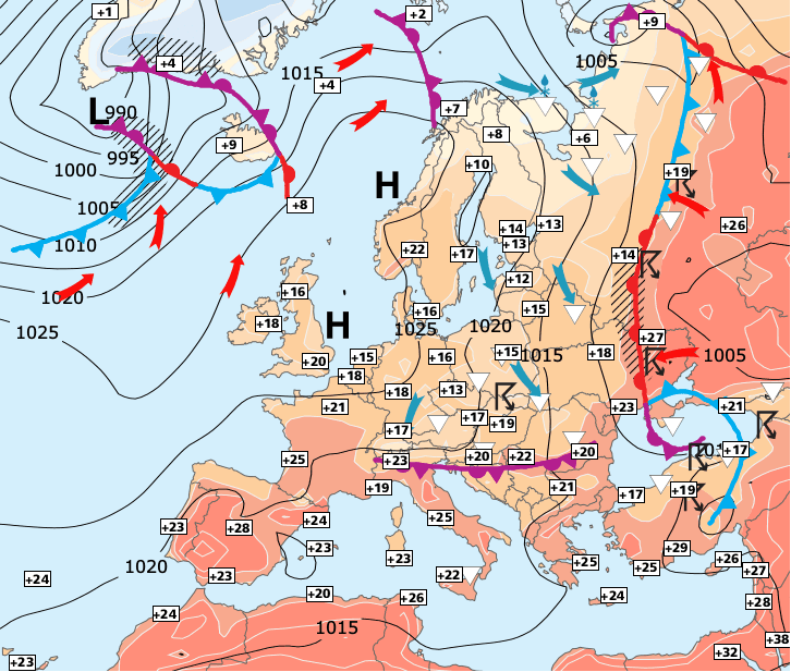 + Le vaste et puissant anticyclone qui recouvre toute la partie Nord de l’Europe maintiendra un temps agréable sur la France au moins jusqu’à mercredi...