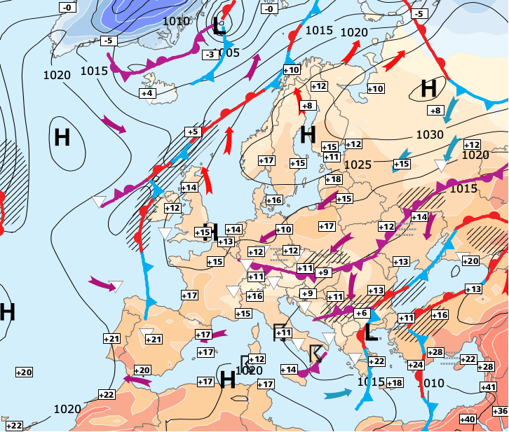 + Le temps reste calme, mais nous arrivons dans une situation "d’entre-deux" ou l’anticyclone scandinave qui protégeait la partie Ouest de la France remonte peu à peu vers le nord, avant qu’une nouvelle cellule anticyclonique britannique ne nous protège pour la fin de la semaine...