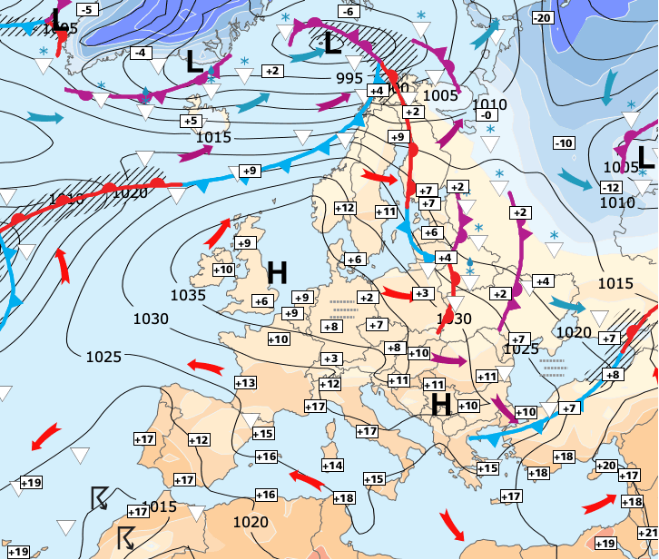 + L’anticyclone va progressivement se décaler vers l’Allemagne, puis l’Europe centrale.