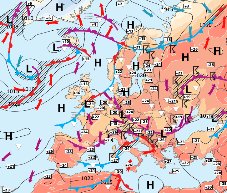 + Nous sommes probablement au début d'une longue période de temps stable car l'anticyclone des Açores qui remonte vers la partie Nord de l'Europe est bien parti pour nous protéger durablement.