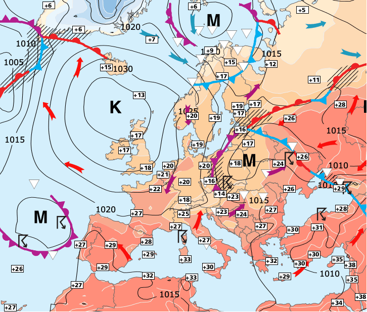 + L'influence de la dépression balte s'estompe ! C'est une bonne nouvelle car c'est elle qui maintient un ciel assez nuageux sur une grande moitié Nord depuis quelques jours ;(