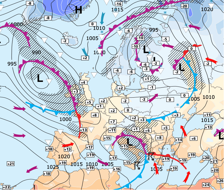 + L’air froid scandinave pourrait finir par gagner davantage de terrain en début de semaine suivante, mais tout cela dépendra de la dynamique chaude qui remontra d’Afrique du Nord (et qu'il ne faut pas sous-estimer...).