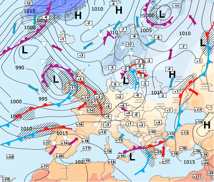 + Samedi, une dépression se formera sur la France et aura pour effet de repousser probablement la principale masse d’air froide d’origine scandinave vers la mer du Nord... Ceci reste à confirmer !